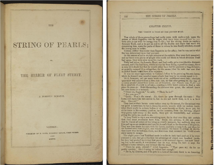 Rebecca Nesvet, an English Literature Professor at University of Wisconsin Green Bay uses FromThePage to teach documentary editing, critical editing, and how to create a Text Encoding Initiative (TEI) edition of The String of Pearls or The Barber of Fleet Street, the second oldest story of Sweeny Todd. FromThePage allows students to correct a poor OCR version, making a real contribution to the reading community. Explore Rebecca’s use of transcription for pedagogy here.