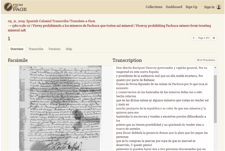 I have used FromThePage as both a research and a pedagogical tool; not having to wrestle with the tool is so helpful in keeping up the momentum of the work. I can confidently ask my colleagues to collaborate without asking them to spend hours learning a new tool or interface. A four year remote collaboration project has endured to a great extent because we could bring project members in seamlessly. In the classroom, my students have found transcribing exciting and gratifying, and a wonderful addition to the secondary material we are learning. Students really like learning this way because it is an unmediated experience; this is a real experience of meeting a scribe through his or her writings.