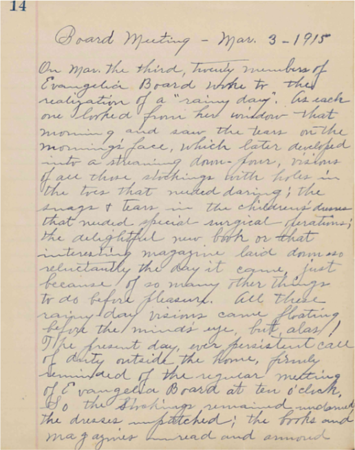 Dr. Julie deGraffenried & Benna Vaughan of Baylor University presented archival documents in a classroom setting to give students research experience in primary sources. Students used FromThePage to transcribe the 1916 minutes of the Evangelia Settlement House, the first daycare program for underprivileged children in Waco, Texas. Students experienced first-hand how transcription is a public service history enthusiasts can perform for the public. See how impactful the experience was for students here.