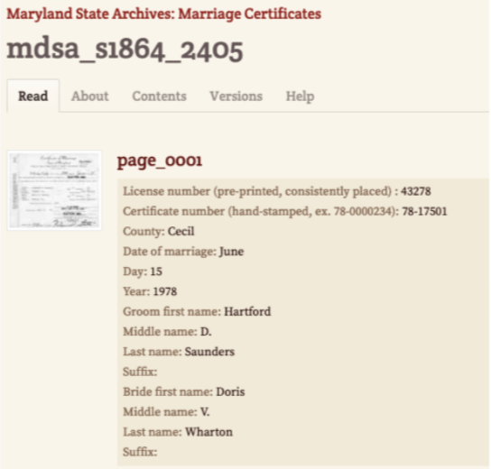 The Maryland State Archives had volunteer transcribers help create an index for over 50,000 marriage certificates. Archivists no longer need to search by hand for the record. This was made more difficult if the patron couldn’t remember the date of their marriage but desperately needed the certificate to apply for social security benefits, a passport, or a driver’s license renewal. Digitized, searchable indexes of records make an enormous difference in helping people who need them and those who use them for genealogical purposes. Check out this project here.